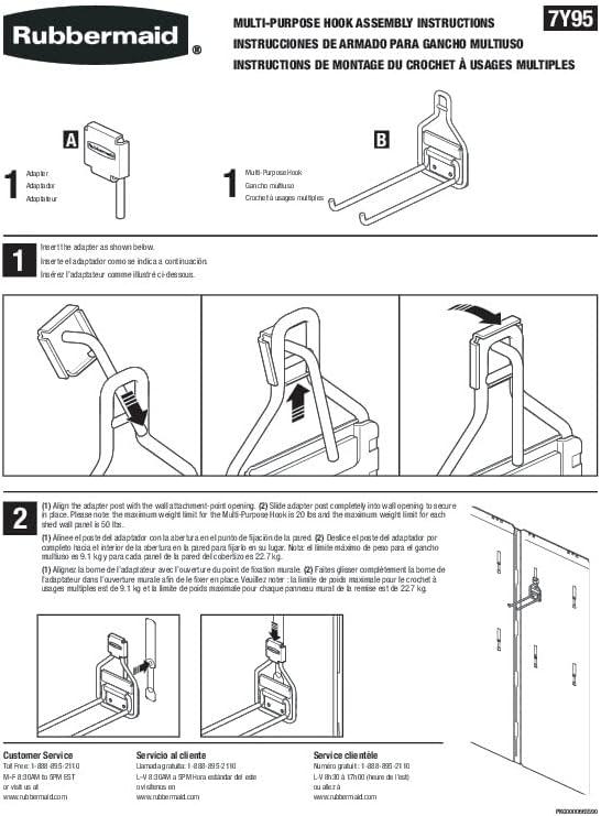 The Rubbermaid Multi-Purpose Hook Accessory will quickly organize the interior of your Rubbermaid shed by utilizing the shed walls for storage space. The Multi-Purpose Hook holds up to 20 pounds and is easy to install with no drilling required. This hook is ideal for long handled tools, pump sprayers, or sports equipment.